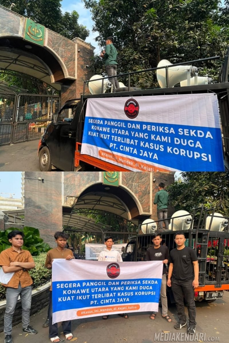 Dalam Gelaran aksi, IMPH menuntut agar Sekda Konut di periksa kembali oleh kejagung RI.