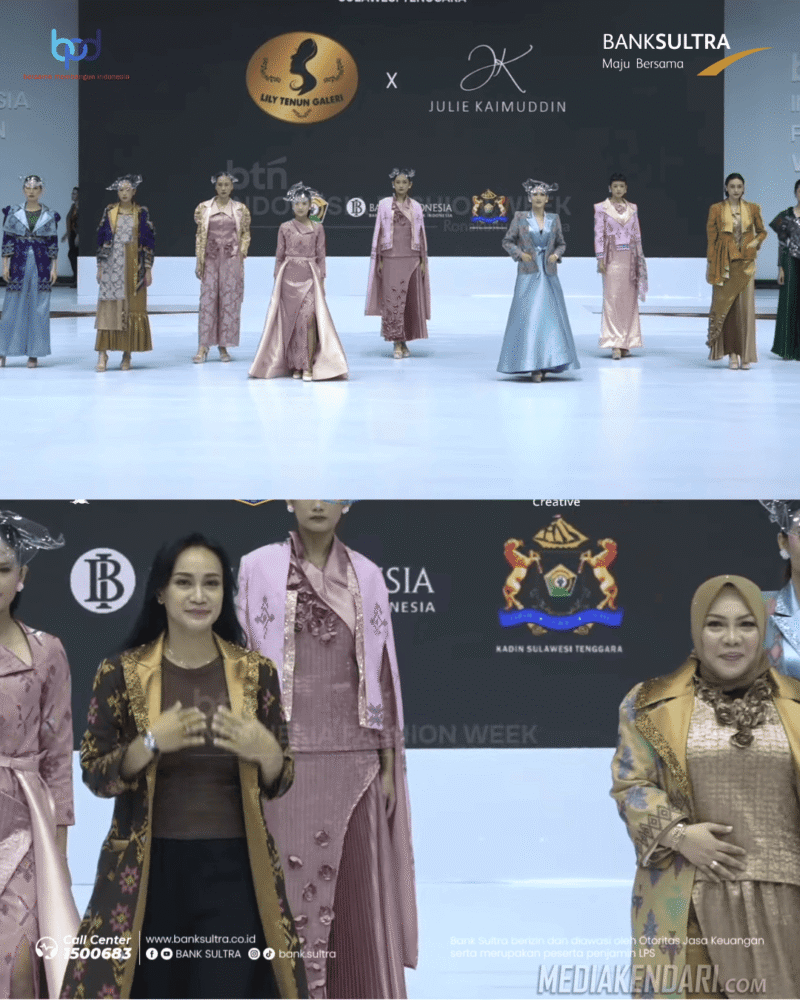 Jakarta, Mediakendari.com – Bank Sultra kembali menunjukkan komitmennya dalam mendukung pelestarian budaya dan pengembangan ekonomi kreatif daerah. Dalam ajang Indonesia Fashion Week (IFW) 2025 yang berlangsung di Jakarta Convention Center (JCC) Senayan mulai tanggal 28 Mei hingga 1 Juni 2025, Bank Sultra turut memberikan dukungan penuh kepada Pemerintah Provinsi Sulawesi Tenggara (Pemprov Sultra) yang menampilkan karya etnik unggulan berupa Pesona Tenun Tolaki “Hinoru Ndolaki”.
