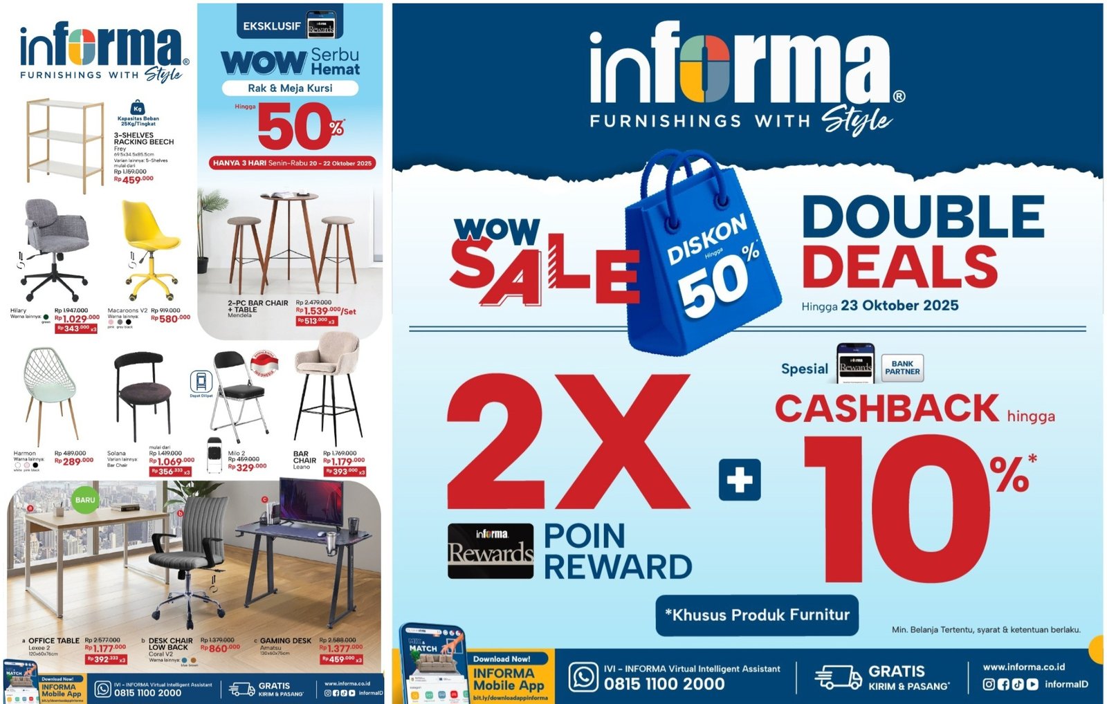 Jadi, tunggu apa lagi? Wujudkan rumah impianmu dengan promo gila-gilaan dari Informa Kendari, karena belanja furnitur kini makin seru dan super hemat di WOW Sale Oktober 2025!