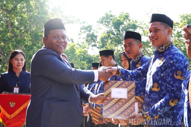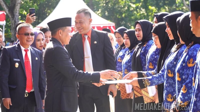 Konawe, Mediakendari.com – Bupati Konawe, Yusran Akbar, ST., menyerahkan Surat Keputusan (SK) Pegawai Pemerintah dengan Perjanjian Kerja (PPPK) pada momentum peringatan Hari Kesaktian Pancasila yang digelar di halaman Kantor Bupati Konawe, Rabu (1/10/2025).