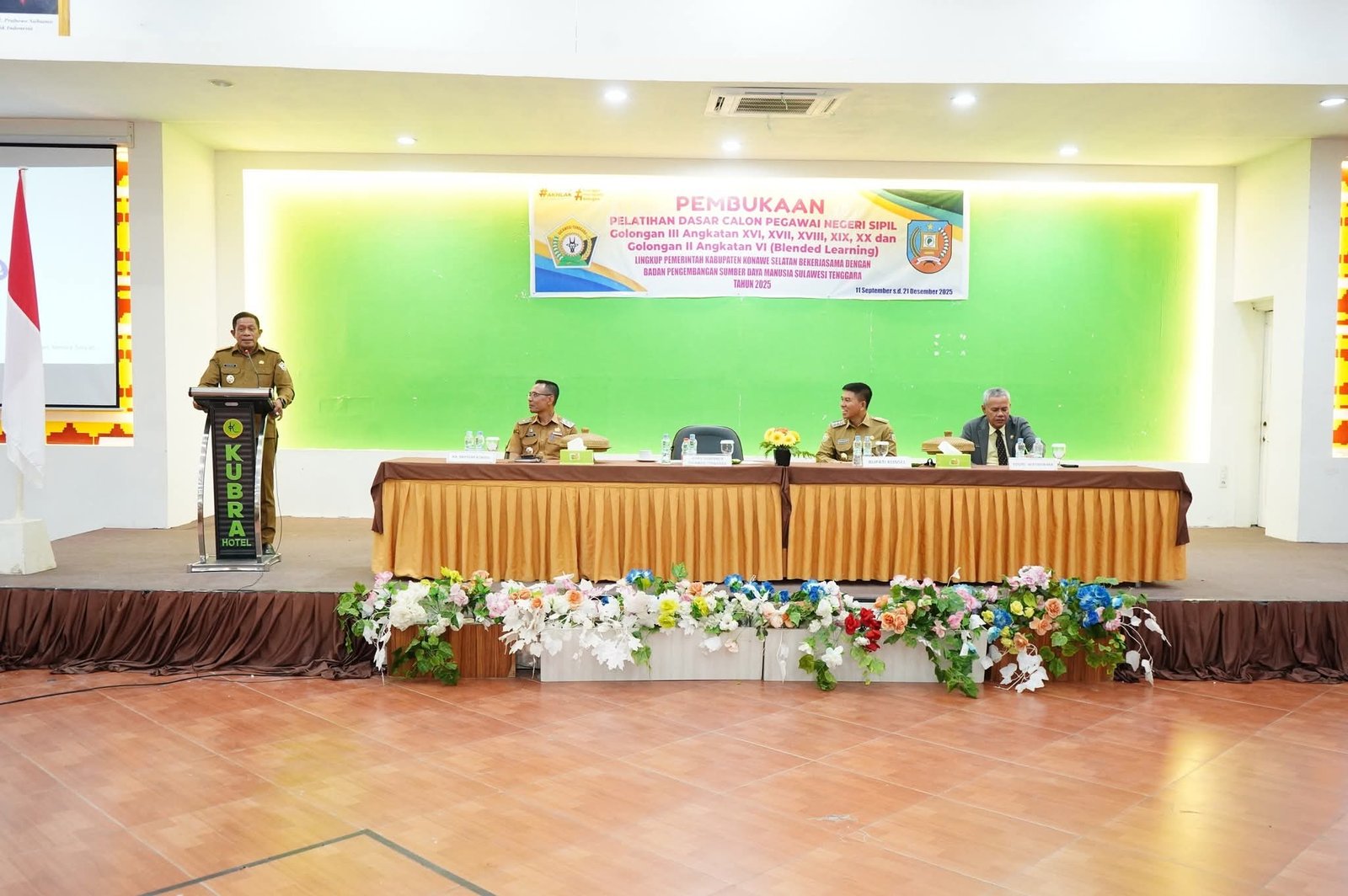 KENDARI, MEDIAKENDARI.com – Wakil Gubernur Sulawesi Tenggara (Sultra), Ir. Hugua, M.Ling., secara resmi membuka Pelatihan Dasar (Latsar) Calon Pegawai Negeri Sipil (CPNS) Tahun 2025, yang dilaksanakan di Hotel Kubra Kendari, Senin (15/12/2025).