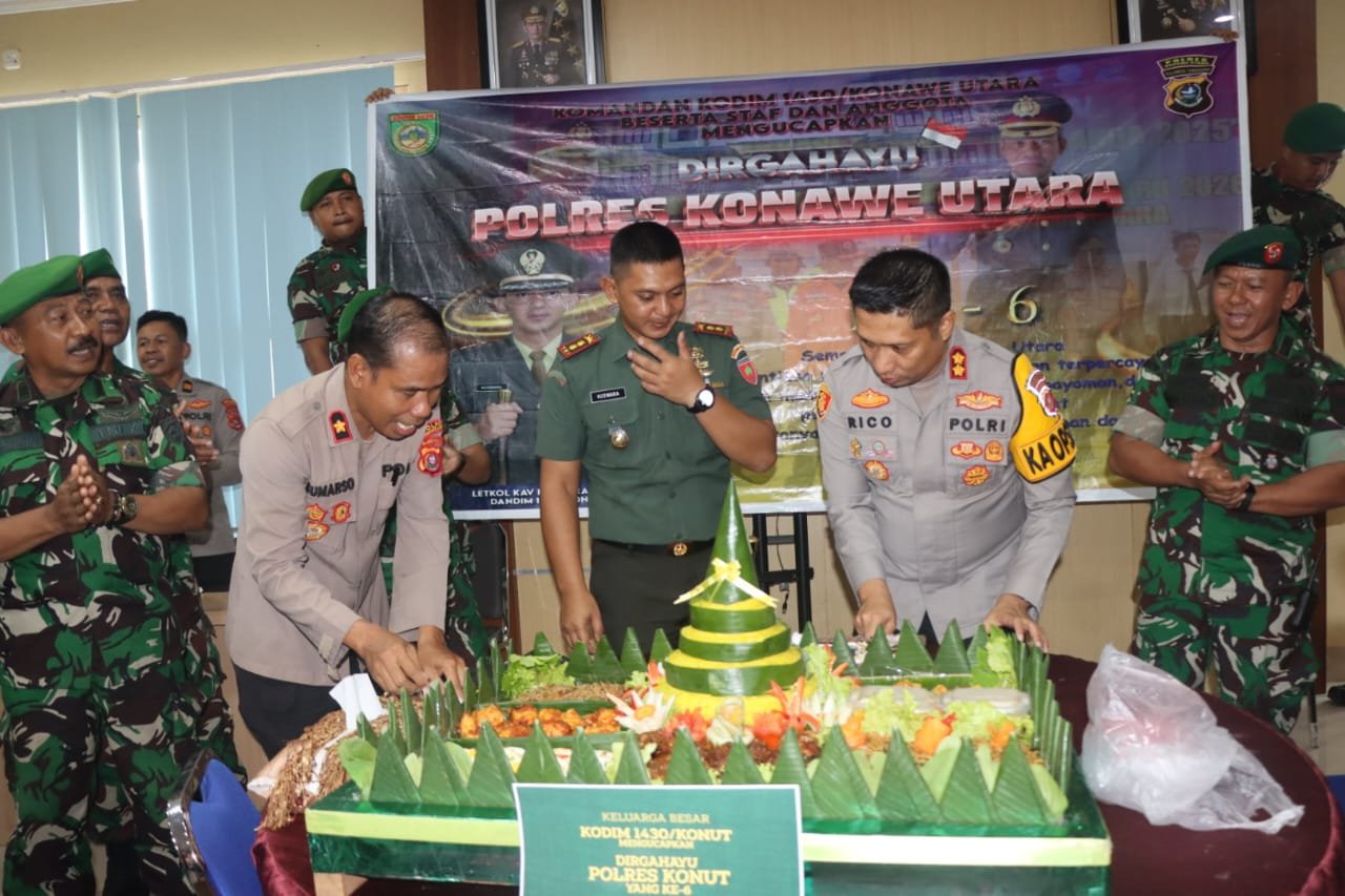 “Selamat ulang tahun Polres Konawe Utara yang ke-6. Semoga terus menebar kebajikan, memberikan pelayanan terbaik kepada masyarakat, serta menjaga keamanan dan ketertiban di wilayah Konawe Utara,” ungkap Dandim 1430 Konut, Letkol Kav. Kuswara, S.I.P.