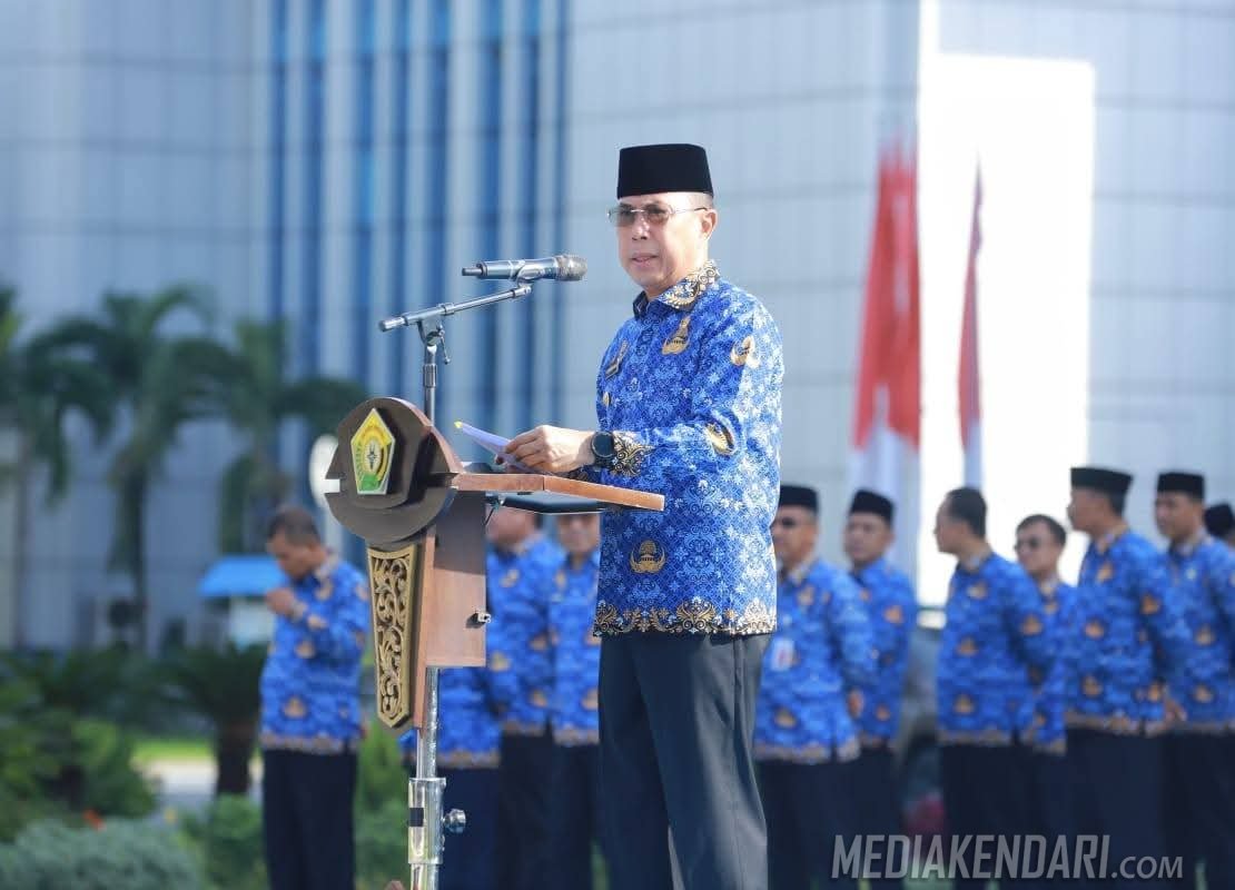 KENDARI, MEDIAKENDARI.com – Gubernur Sulawesi Tenggara (Sultra), Mayjen TNI (Purn) Andi Sumangerukka, menegaskan pentingnya mewujudkan birokrasi yang bersih, profesional, dan berorientasi pada pelayanan publik saat memimpin Upacara Hari Kesadaran Nasional (HKN) lingkup Pemerintah Provinsi Sultra di Lapangan Kantor Gubernur, Senin, 17 November 2025.