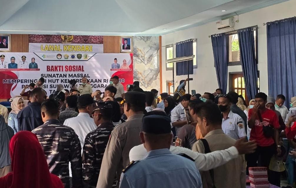 KENDARI, MEDIAKENDARI.com – Dalam rangka memperingati Hari Ulang Tahun ke-80 Kemerdekaan Republik Indonesia, Polda Sulawesi Tenggara melalui Direktur Pembinaan Masyarakat (Dirbinmas) menghadiri kegiatan Bakti Sosial Sunatan Massal yang digelar di Klinik Kesehatan Lanal Kendari, Rabu pagi (20/8/2025).