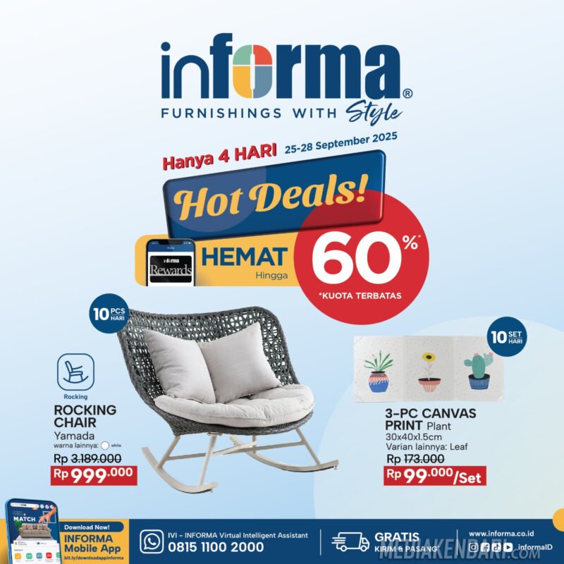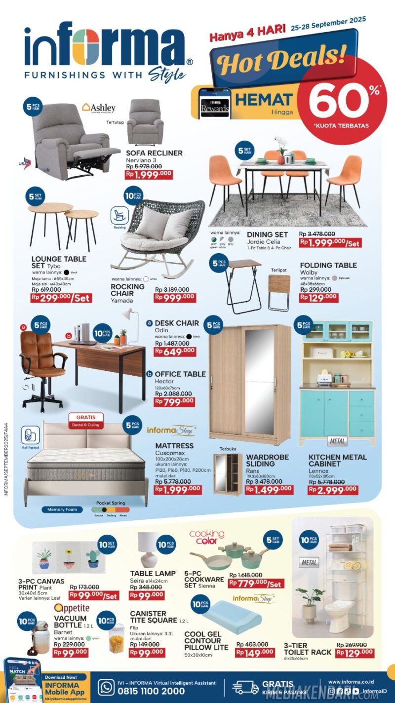 Bagi pelanggan setia Informa Kendari bisa menikmati promo Hot Deals dengan diskon gila-gilaan hingga 60% untuk berbagai produk furnitur dan perlengkapan rumah tangga pilihan.