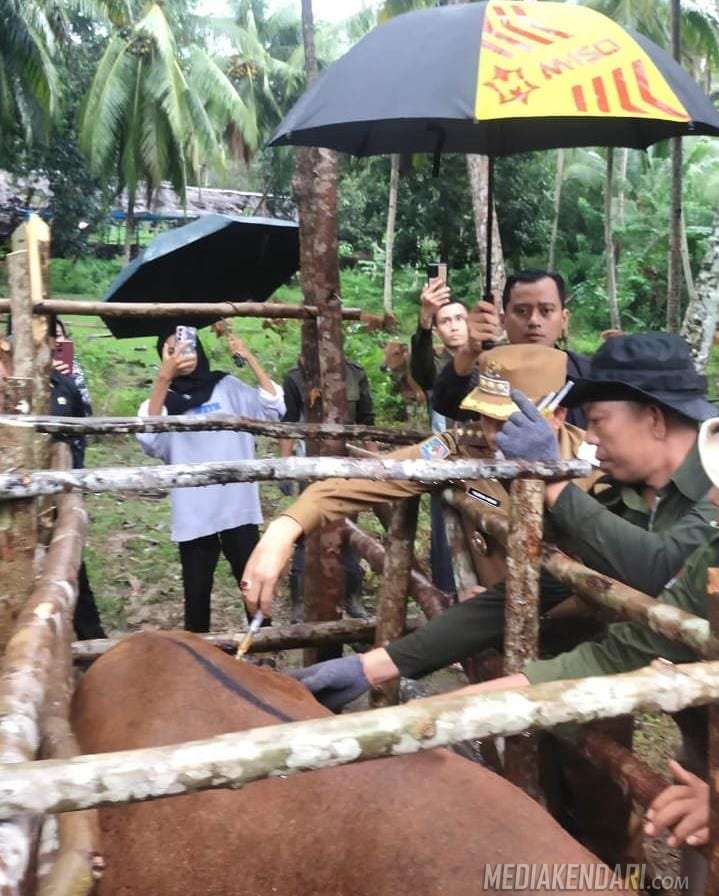 Konawe, Mediakendari.com — Bupati Konawe, Yusran Akbar, ST, melakukan kunjungan lapangan ke Desa Telaga, Kecamatan Soropia, guna meninjau secara langsung pelaksanaan pengobatan dan pelayanan kesehatan hewan pada ternak sapi milik warga.