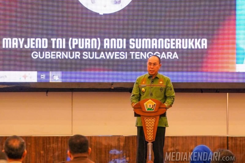 Kendari, Mediakendari.com — Gubernur Sulawesi Tenggara, Mayjen TNI (Purn) Andi Sumangerukka secara resmi membuka kegiatan Sosialisasi Peraturan Presiden (Perpres) Nomor 46 Tahun 2025 tentang Perubahan Kedua Atas Perpres Nomor 16 Tahun 2018 Tentang Pengadaan Barang/Jasa Pemerintah, yang diselenggarakan di Hotel Claro Kendari, Kamis (26/6/2025).