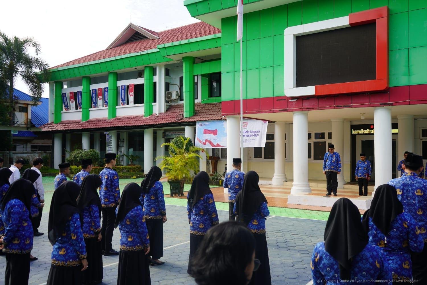 Secara terpisah, Kepala Kanwil Kemenkum Sultra, Topan Sopuan, menyampaikan bahwa semangat bela negara harus tercermin dalam sikap dan kinerja ASN sehari-hari.