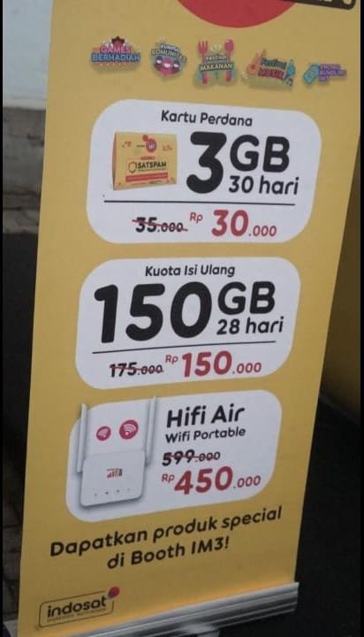 Salah satu penawaran yang menjadi perhatian pengunjung adalah potongan harga perangkat HiFi Air (WiFi Portable). Produk tersebut mendapatkan diskon dari harga normal Rp599.000 menjadi Rp450.000 selama periode kegiatan berlangsung.