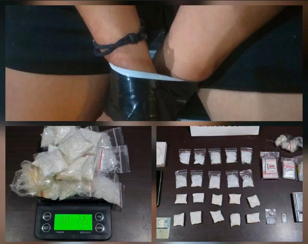 Petugas bersama saksi selanjutnya melakukan penggeledahan di rumah tersangka. Hasilnya, sebuah paper bag berisi 22 paket sabu ditemukan bersama sejumlah barang bukti lain yang berkaitan dengan tindak pidana narkotika. Total berat bruto sabu yang diamankan mencapai sekitar 225,1 gram.