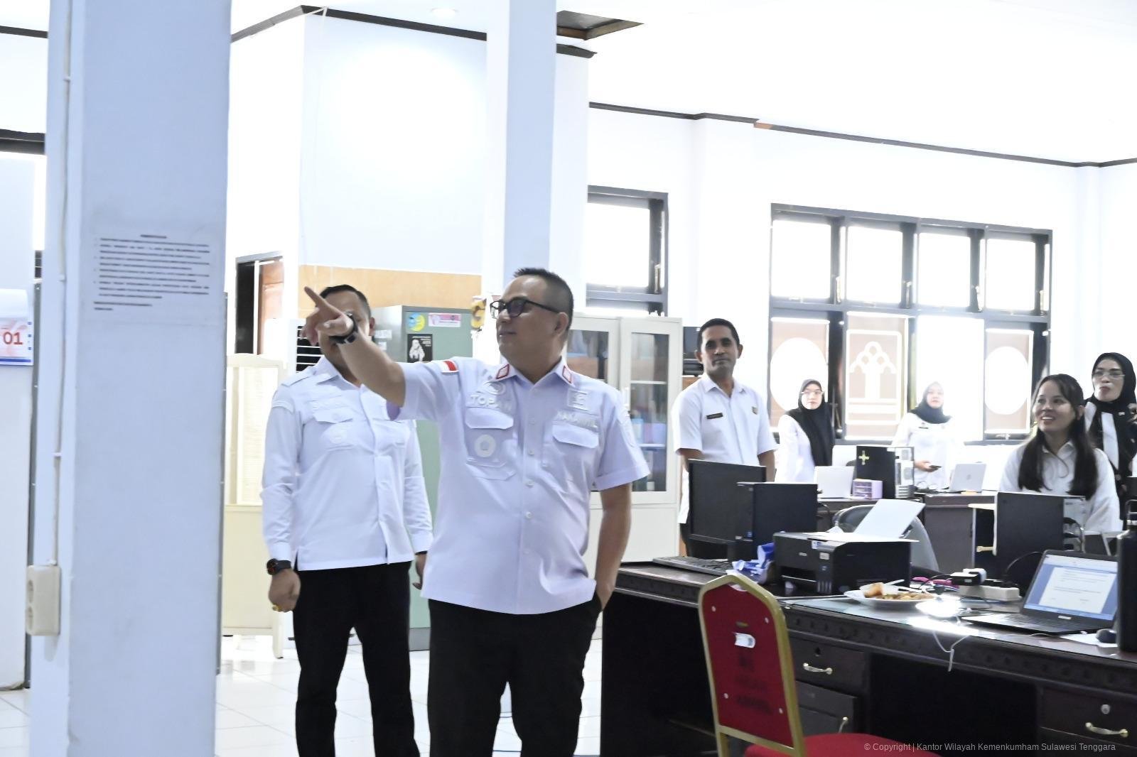 KENDARI, MEDIAKENDARI.com – Menyambut libur panjang Natal dan Tahun Baru 2025, Kepala Kantor Wilayah Kementerian Hukum Sulawesi Tenggara, Topan Sopuan melakukan pemantauan menyeluruh terhadap kinerja pegawai serta kondisi sarana dan prasarana di lingkungan Kantor Wilayah Kemenkum Sultra.