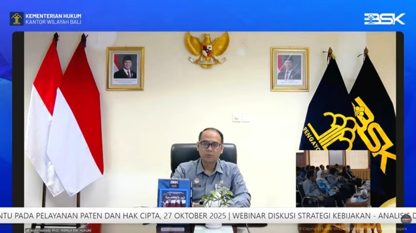 Kegiatan yang dilaksanakan secara virtual ini dibuka secara resmi oleh Kepala Badan Strategi Kebijakan Kementerian Hukum dan HAM, Andry Indrady.