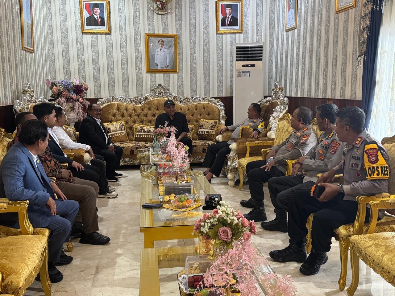 Kapolda Sultra bersama Ketua DPRD Sultra saat melakukan kunjungan kerja dan koordinasi dengan Pemerintah Kabupaten Bombana guna memastikan situasi kamtibmas tetap kondusif menjelang Ramadan.