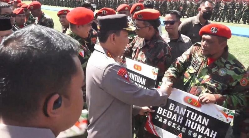 Sebagai bentuk perhatian, Kapolri juga secara simbolis menyerahkan bantuan program bedah rumah untuk anggota Kokam yang dinilai memiliki dedikasi tinggi.