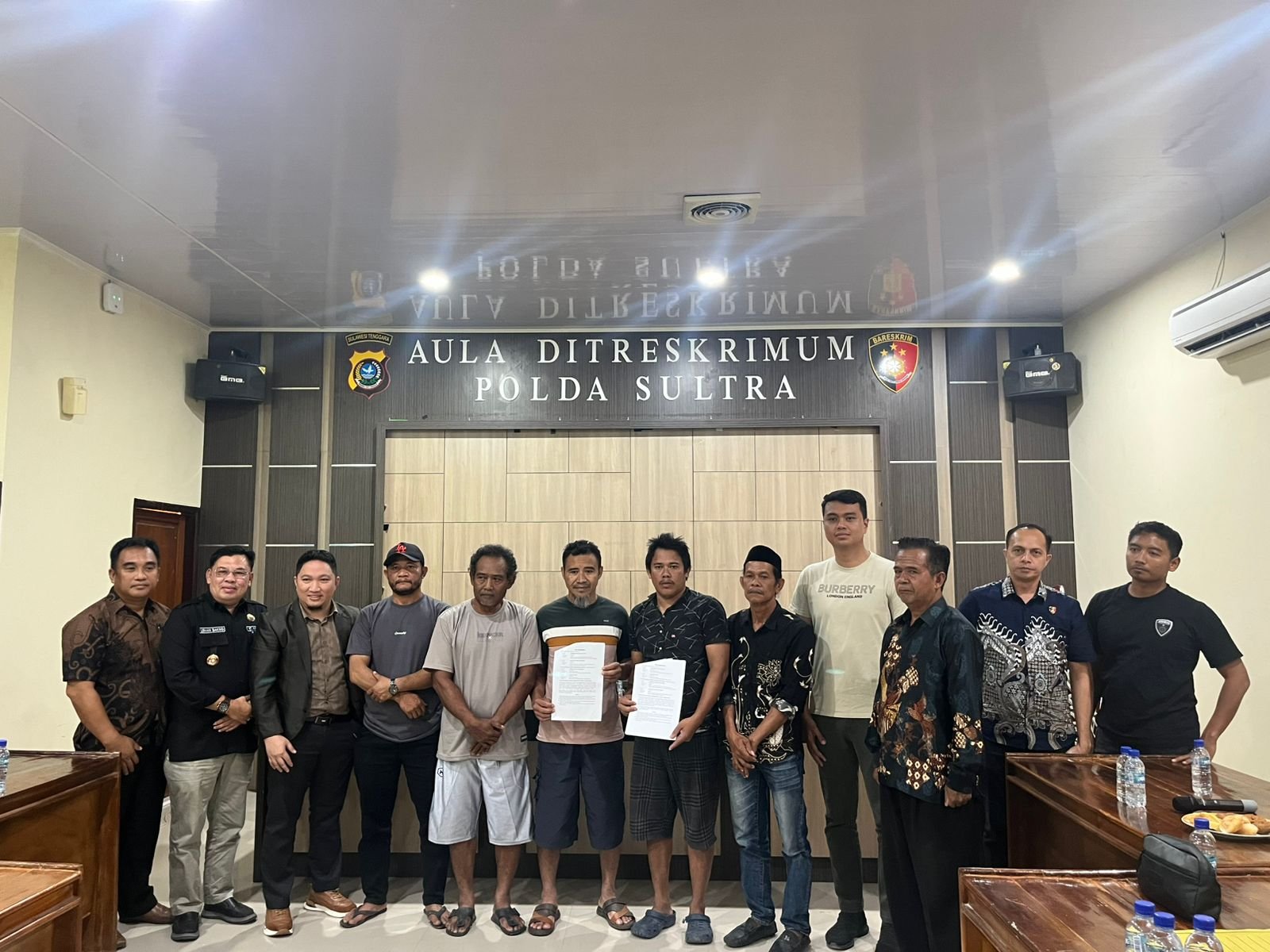Sebagai tindak lanjut, penyidik Ditreskrimum Polda Sultra menerbitkan surat kesepakatan damai yang ditandatangani kedua belah pihak dan disaksikan oleh aparat pemerintah setempat. Para pelapor resmi mencabut laporan polisi dan mengajukan permohonan penangguhan penahanan terhadap para tersangka.