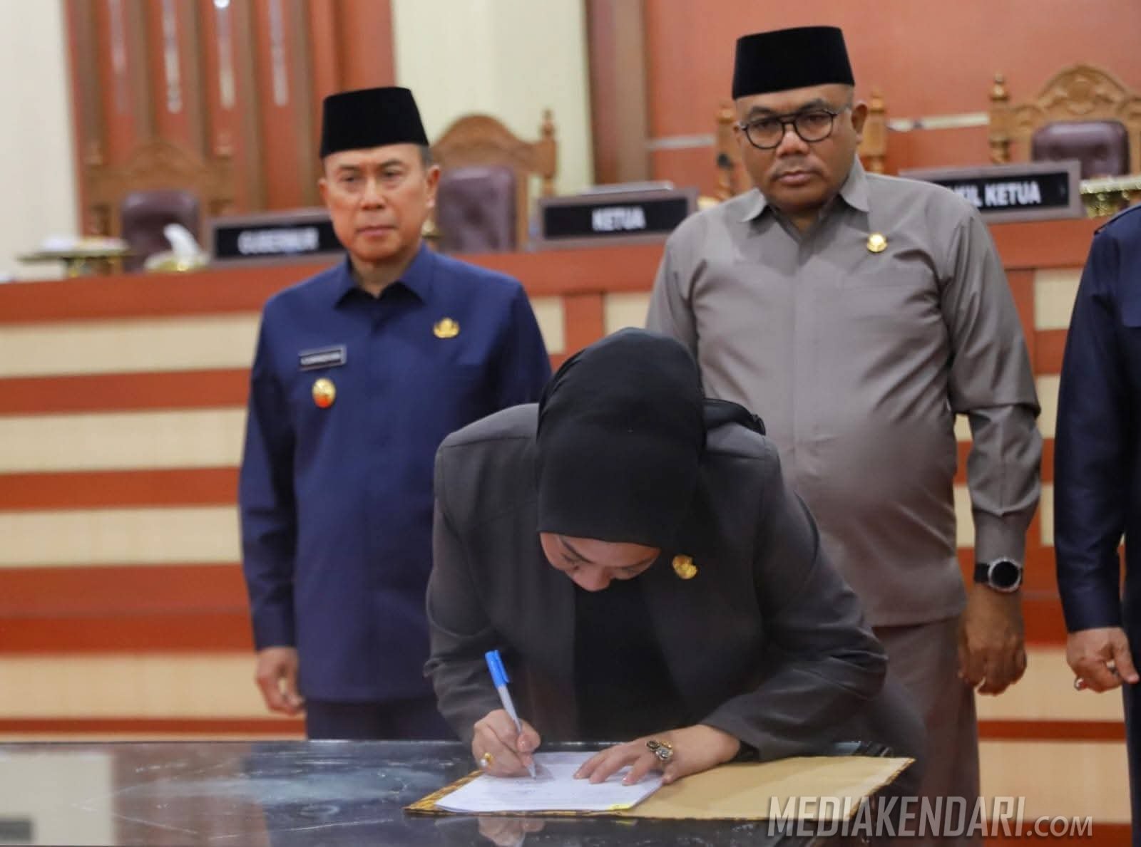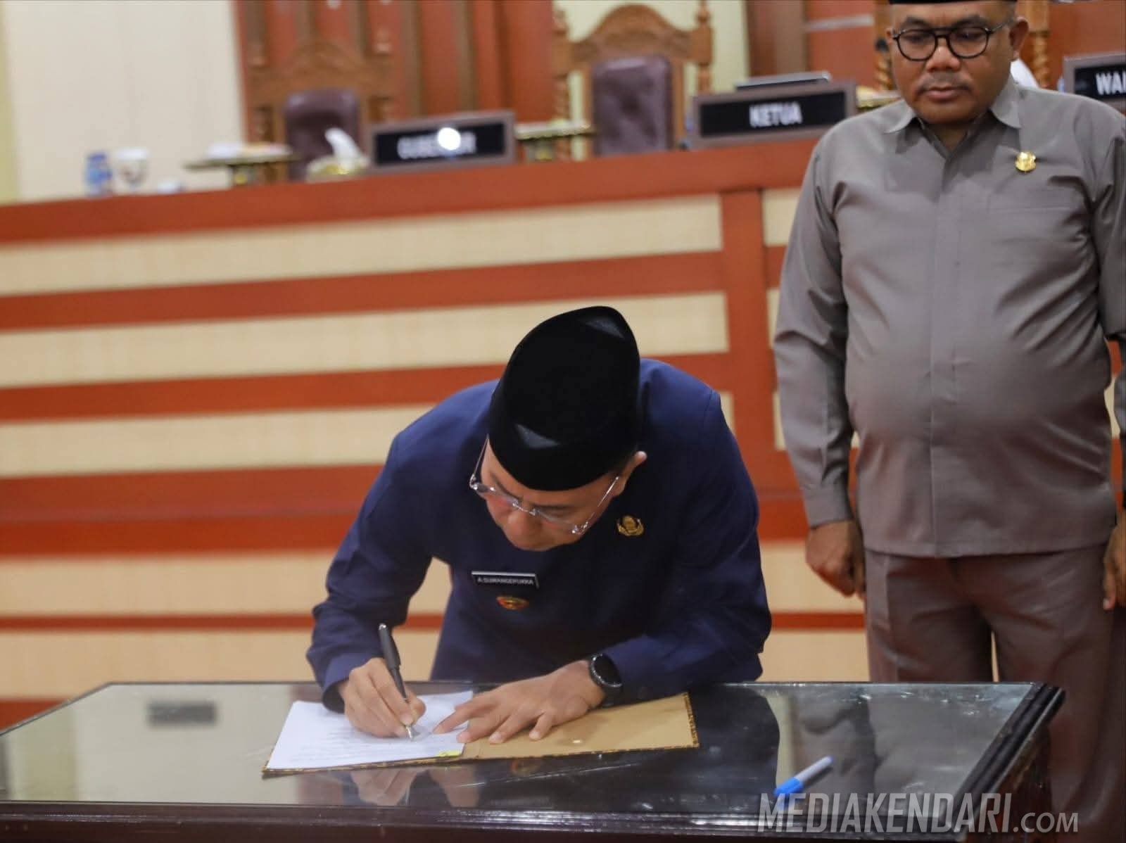 Acara ini diawali dengan penyampaian laporan hasil pembahasan rapat gabungan komisi oleh Rosni, SE, dilanjutkan dengan penandatanganan naskah persetujuan bersama antara Pemerintah Sultra dan DPRD Sultra, yang menjadi penanda berakhirnya rangkaian pembahasan dokumen RPJMD 2025–2029.