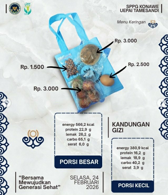 “Di Konawe itu ada rambutan, di SPPG, tapi rambutan di posting itu berbeda sama yang menu MBG yang ada di Kabupaten Konawe. Contohnya seperti itu roti, roti itu berbeda yang dimana roti yang di posting di media itu tidak sama dengan di menu MBG Kabupaten Konawe, SPPG,” jelas Nopri saat dihubungi melalui telepon, Senin (23/2/2026).