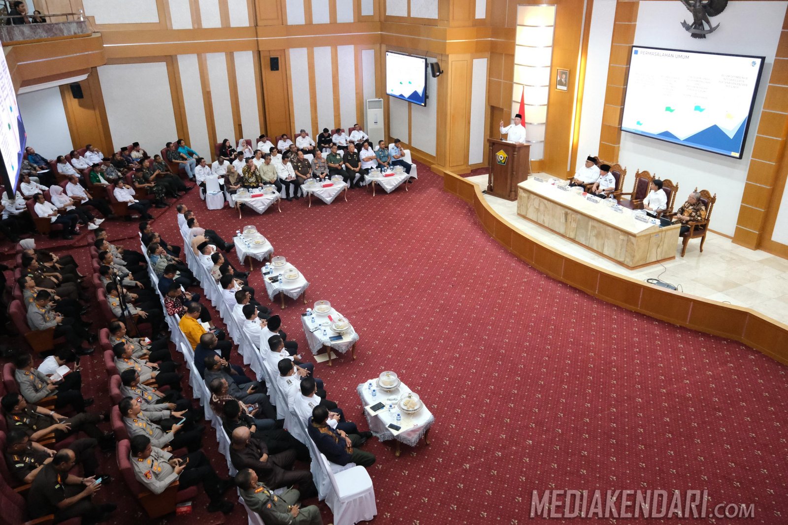 “poin pokoknya bagaimana cara kita menjaga aset negara jangan sampai konflik dengan masyarakat, kedua tanah-tanah di Sultra diusahakan segera tersertifikasi, ketiga sertifikat lama yang terbit tahun 1960-1997 yang berpotensi tumpang tindih karena tidak didukung teknologi modern akan segera di mukhtahirkan, keempat jika ada perusahaan yang belum memenuhi kewajiban mohon segera dilaporkan, bagi yang belum sudah tentu akan ada peringatan” tuturnya.