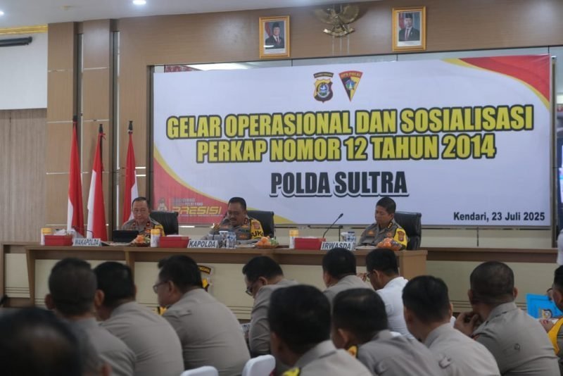 KENDARI, MEDIAKENDARI.com – Kepala Kepolisian Daerah (Kapolda) Sulawesi Tenggara (Sultra), Irjen Pol. Didik Agung Widjanarko, S.IK., M.H., secara resmi membuka kegiatan Gelar Operasional Polda Sultra Tahun Anggaran 2025, Rabu, 23 Juli 2025.