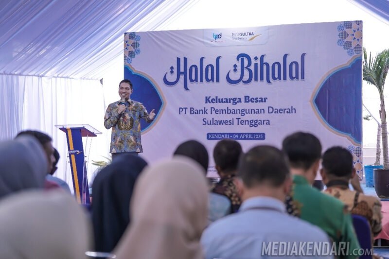 Kendari, 09 April 2025 – Dalam rangka mempererat tali silaturahmi dan semangat kebersamaan usai Hari Raya Idulfitri 1446 H, Bank Sultra menggelar kegiatan Halal Bihalal yang dilaksanakan secara hybrid pada Rabu (9/4). Acara ini dihadiri oleh jajaran Direksi, Komisaris, serta seluruh karyawan Bank Sultra. Untuk karyawan yang berada di Kota Kendari, kegiatan diselenggarakan secara langsung di Kantor Pusat Bank Sultra, sementara karyawan dari seluruh cabang di luar Kota Kendari mengikuti kegiatan ini secara online melalui platform virtual yang telah disediakan.