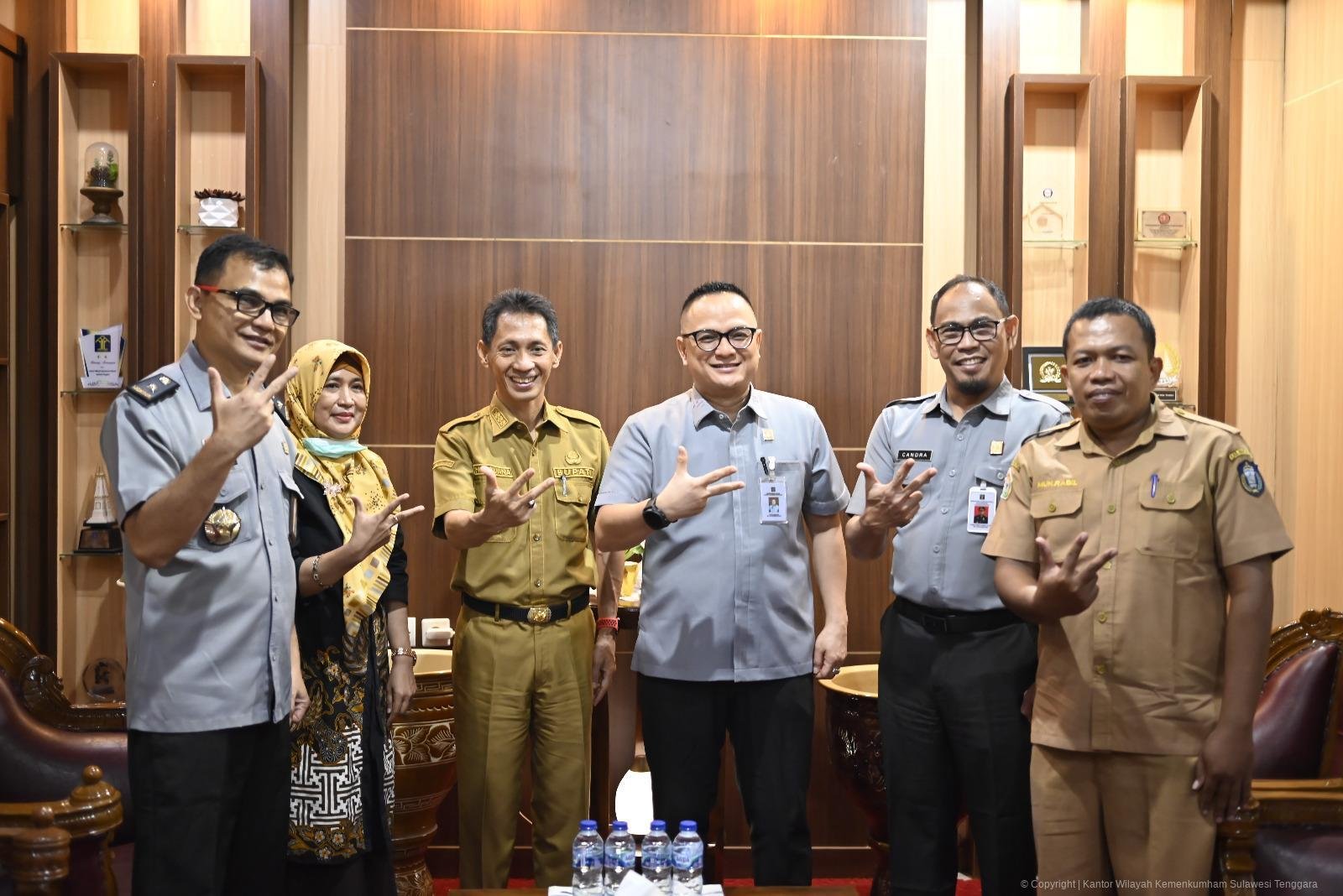 KENDARI, MEDIAKENDARI.com — Upaya memperkuat tata kelola hukum dan pembangunan ekonomi di daerah kembali dipertegas melalui pertemuan resmi antara Kepala Kantor Wilayah Kementerian Hukum dan HAM Sulawesi Tenggara (Kemenkumham Sultra), Topan Sopuan, dan Bupati Wakatobi, H. Haliana.
