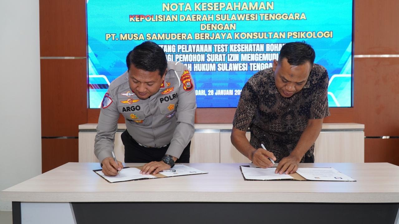 KENDARI, MEDIAKENDARI.com – Kepolisian Daerah Sulawesi Tenggara (Polda Sultra) resmi menjalin kerja sama dengan PT Nusa Samudra Berjaya Konsultan Psikologi melalui penandatanganan Nota Kesepahaman (MoU) guna memperkuat dukungan psikologis bagi personel lalu lintas.
