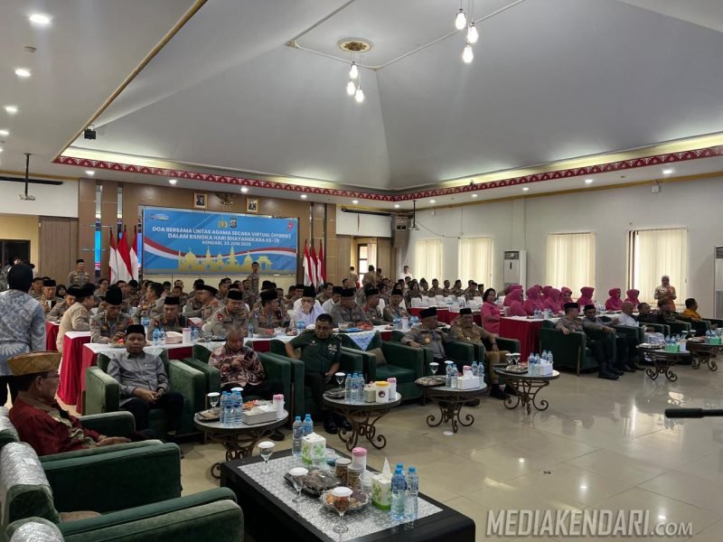 Kendari, Mediakendari.com – Dalam rangka menyambut Hari Bhayangkara ke-79, Kepolisian Daerah Sulawesi Tenggara (Polda Sultra) menggelar doa bersama lintas agama yang berlangsung secara khidmat pada Senin (30/6).