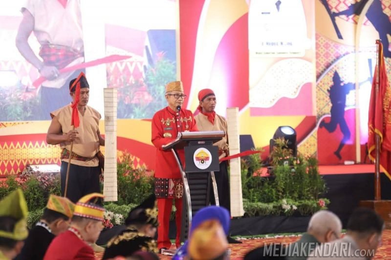 KENDARI, Mediakendari.com – Dewan Penasihat, Pimpinan Pusat Lembaga Adat Tolaki Sulawei Tenggara ( DP DPP LAT Sultra), yang juga Rektor UHO Terpilih, Prof. Armid canggung saat dirinya dinobatkan naik ke Pedium menyampaikan selayang pandanya usai dikukuhkan sebagai Dewan Penasehat, pada, Sabtu, 12 Juni 2025 di Azizah Syariah Hotel Kendari.