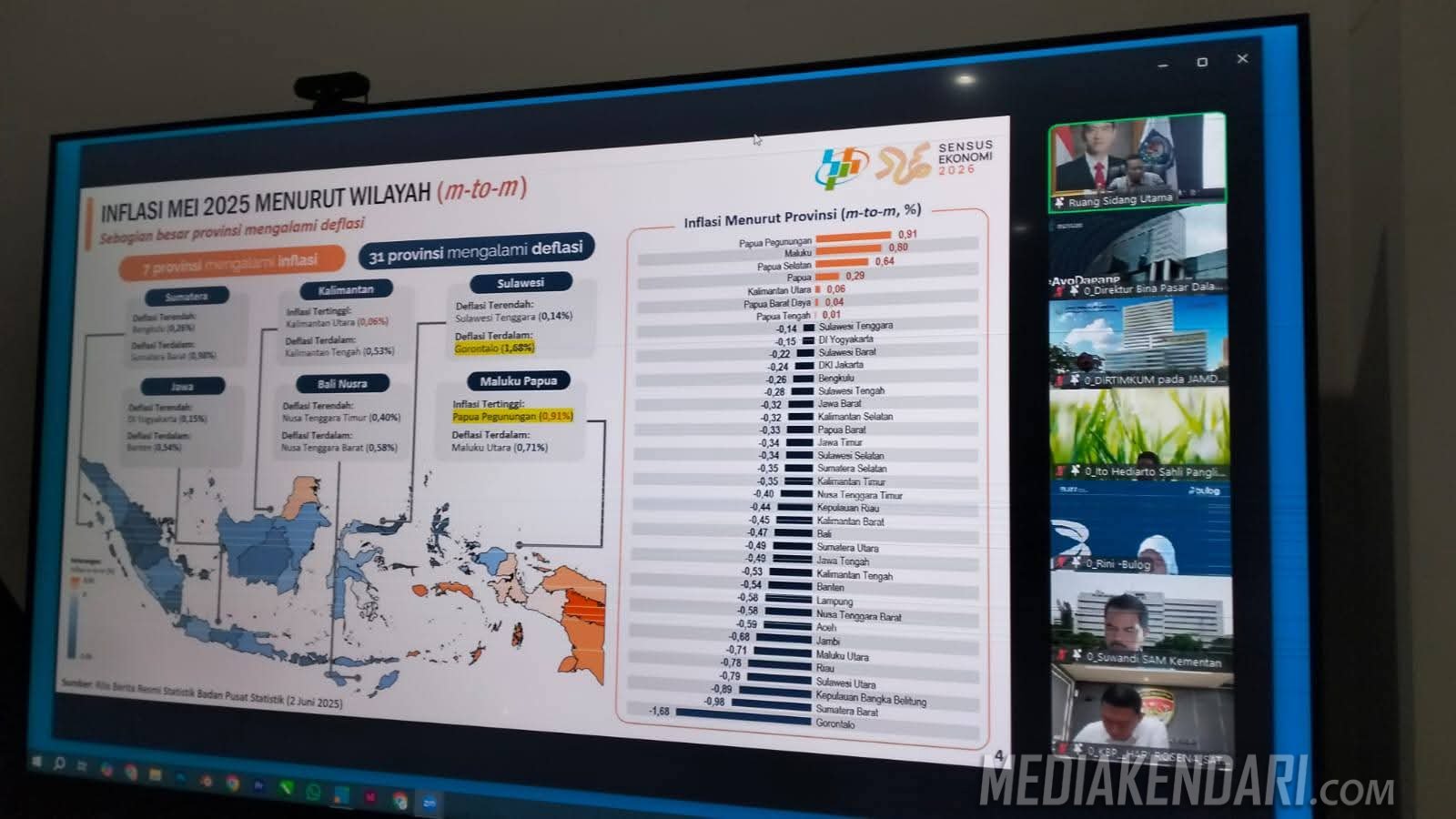 Kendari, mediakendari.com —Pemerintah Provinsi Sulawesi Tenggara (Pemprov Sultra) mengikuti Rapat Koordinasi (Rakor) Pengendalian Inflasi Daerah yang diselenggarakan secara rutin oleh Kementerian Dalam Negeri Republik Indonesia (Kemendagri RI) setiap minggunya. Rakor ini digelar secara virtual melalui Zoom Meeting dan dipusatkan di Ruang Rapat Biro Perekonomian Sekretariat Daerah (Setda) Provinsi Sulawesi Tenggara. Rabu, (04/6/2025)