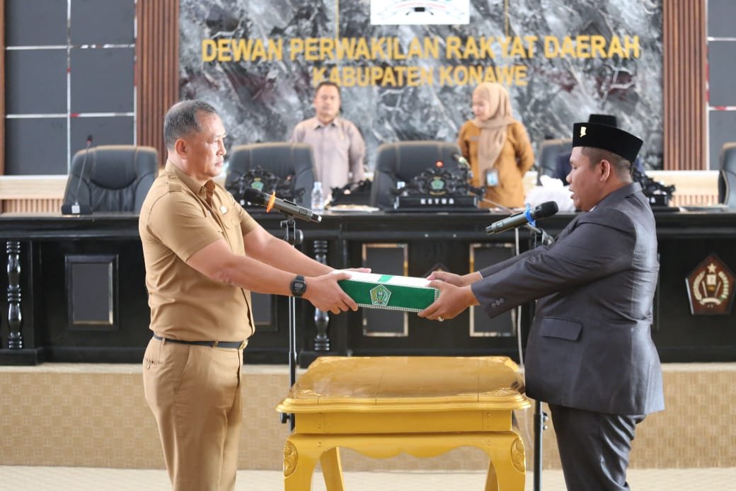 KONAWE, MEDIAKENDARI.com – Sejarah baru tercipta di Kabupaten Konawe, dalam suasana rapat paripurna yang hangat dan penuh semangat, DPRD Konawe bersama Bupati Konawe, H. Yusran Akbar, S.T., resmi mengetuk palu pengesahan Rencana Pembangunan Jangka Menengah Daerah (RPJMD) 2025–2029.