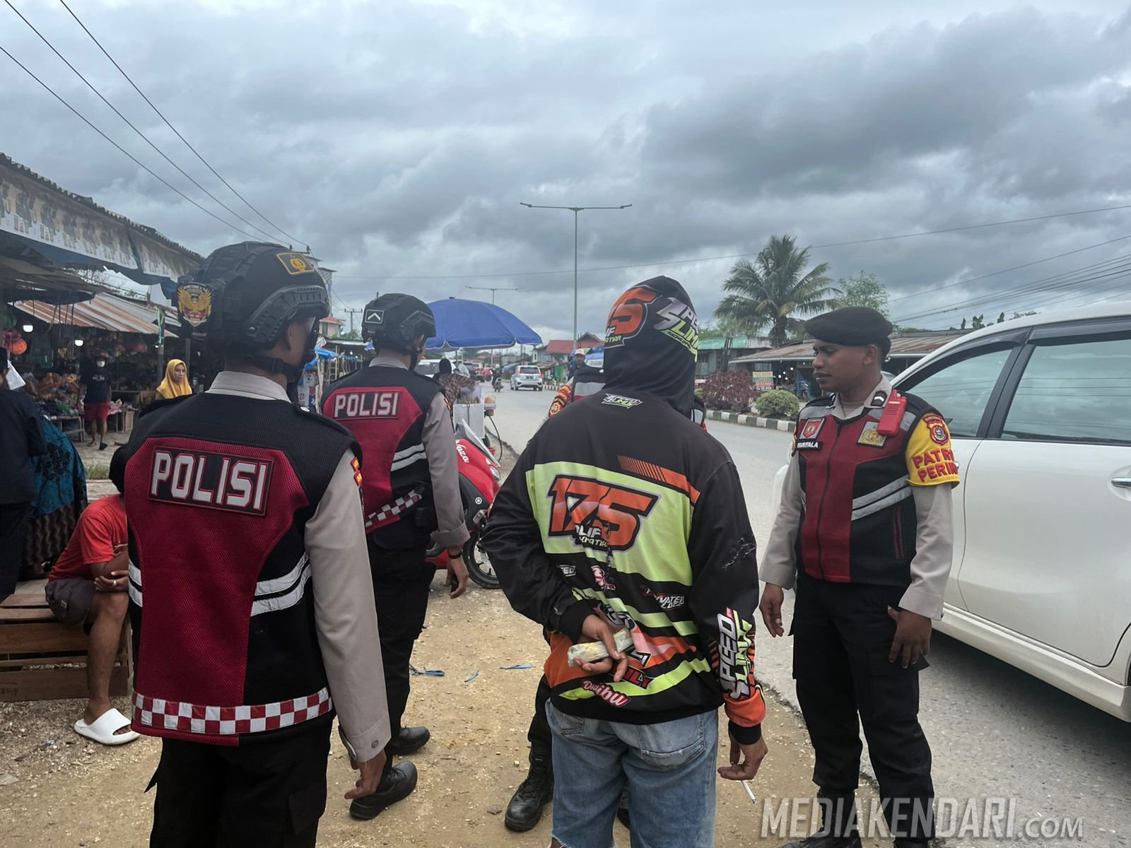Dalam operasi tersebut, petugas menemukan seorang juru parkir bernama AD (23), warga Jalan Bahagia Dua, Kecamatan Wua-Wua, yang diduga melakukan pungutan liar kepada para pengunjung pasar.