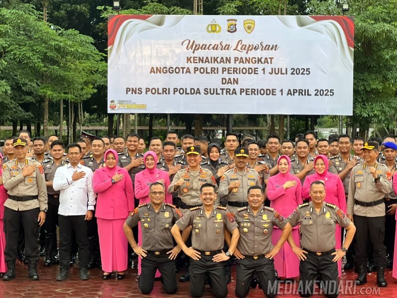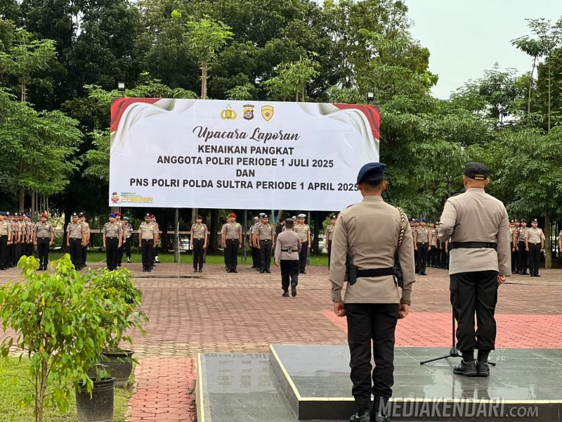 Kendari, Mediakendari.com – Dalam rangka menyambut Hari Bhayangkara ke-79, sebanyak 629 personel Polda Sulawesi Tenggara dan jajaran resmi menerima kenaikan pangkat setingkat lebih tinggi, Senin (30/6/2025).