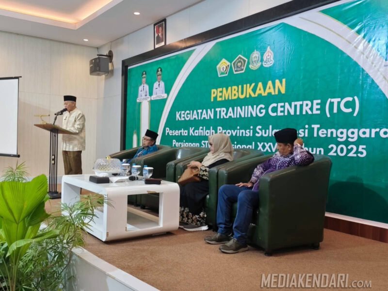 Kendari, Mediakendari.com – Sekretaris Daerah Provinsi Sulawesi Tenggara (Sultra), yang juga menjabat sebagai Ketua Umum Lembaga Pengembangan Tilawatil Qur’an (LPTQ) Provinsi Sultra, secara resmi mewakili Gubernur Sultra, Mayjen TNI (Purn) Andi Sumangerukka (ASR), dalam acara pembukaan Training Centre peserta Seleksi Tilawatil Qur’an dan Hadis (STQH) Nasional ke-28 Tahun 2025, yang berlangsung di Kota Kendari, Minggu (21/9/2025).