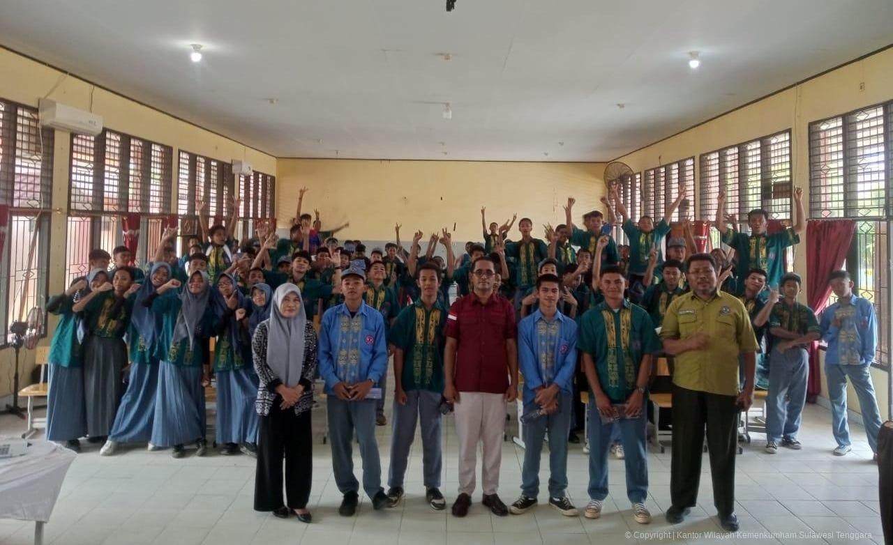 KENDARI, MEDIAKENDARI.com – Kantor Wilayah Kementerian Hukum dan HAM (Kemenkumham) Sulawesi Tenggara melalui Bidang Kekayaan Intelektual (KI) Divisi Pelayanan Hukum (Yankum) menggelar kegiatan sosialisasi Hak Kekayaan Intelektual (HKI) di SMKN 2 Kendari.