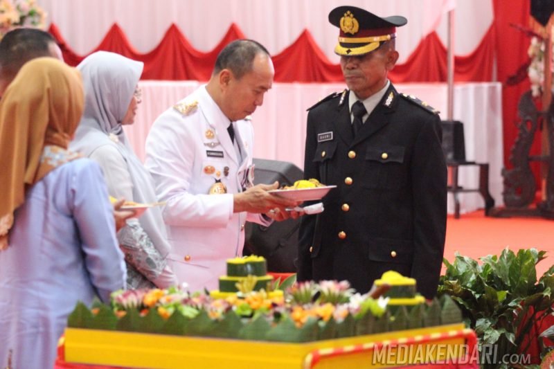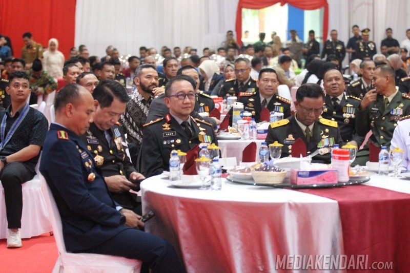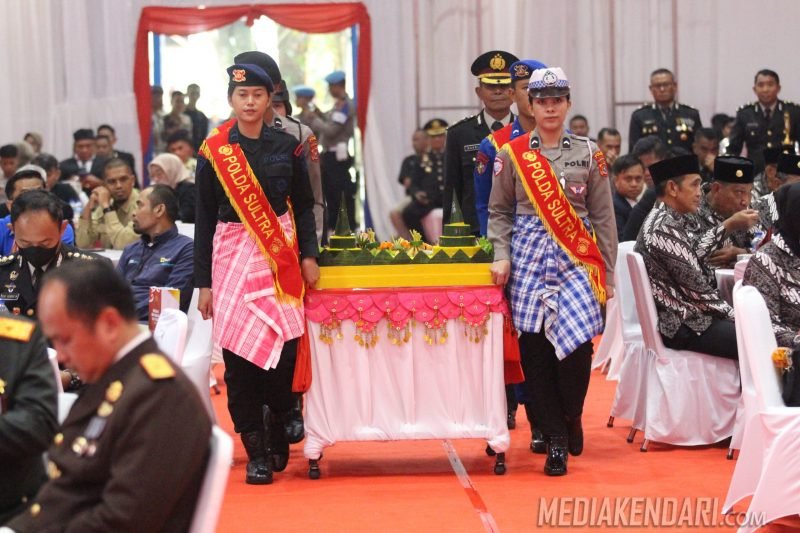Kendari, Mediakendari.com — Dalam rangka memperingati Hari Bhayangkara ke-79, Polda Sulawesi Tenggara menggelar acara syukuran yang berlangsung di Aula Bahteramas, Kantor Gubernur Sultra, Selasa, 1 Juli 2025.