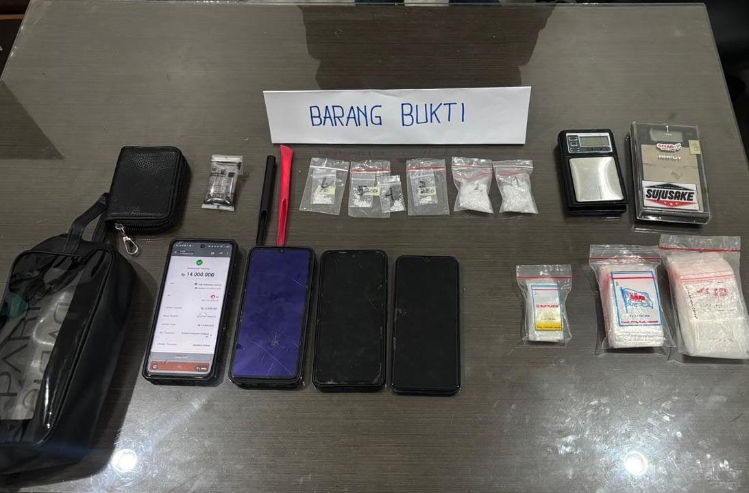 Tiga orang yang diamankan masing-masing berinisial AI (34), MA (36), dan RSU. Polisi menyebut dua di antaranya merupakan residivis dalam kasus serupa. Selain enam sachet sabu, petugas juga menyita sejumlah barang bukti non-narkotika berupa beberapa unit telepon genggam, timbangan digital, plastik kemasan, serta alat yang diduga digunakan untuk pengemasan.