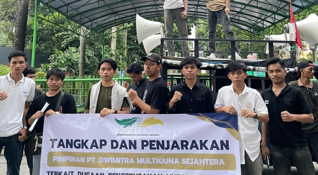 KENDARI, MEDIAKENDARI.com — Gerakan Mahasiswa Intelektual Indonesia (GMII) melakukan aksi demonstrasi di depan kantor Kementerian Kehutanan Republik Indonesia, menuntut penegakan hukum atas dugaan perusakan hutan mangrove yang dilakukan oleh PT Dwimitra Multiguna Sejahtera (DMS) di kawasan pesisir Pantai Lasolo, Desa Tokowuta, Kecamatan Lasolo, Kabupaten Konawe Utara, Sulawesi Tenggara.