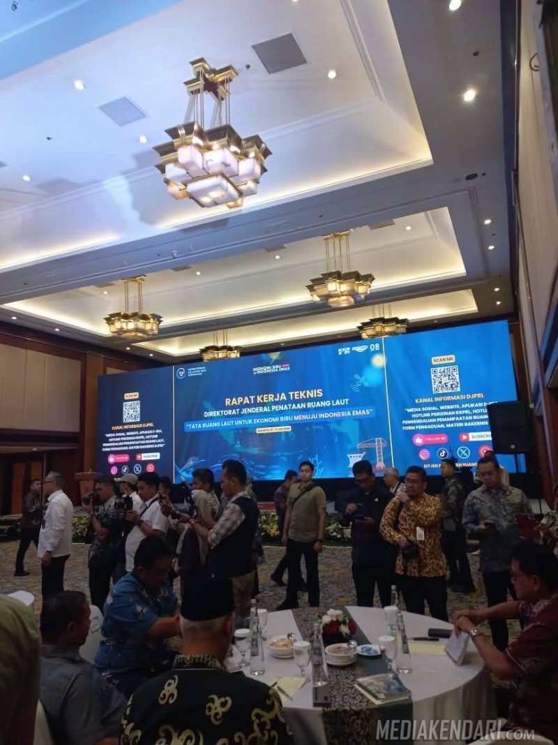 Jakarta, Mediakendari.com – Wakil Gubernur Sulawesi Tenggara (Wagub), Ir. Hugua, M. Ling, menghadiri Rapat Kerja Teknis (Rakernis) Direktorat Jenderal Penataan Ruang Laut yang mengusung tema Tata Ruang Laut Untuk Ekonomi Biru Menuju Indonesia Emas, berlangsung di Hotel Borobudur, Jakarta Pusat, Selasa, (15 Juli 2025)