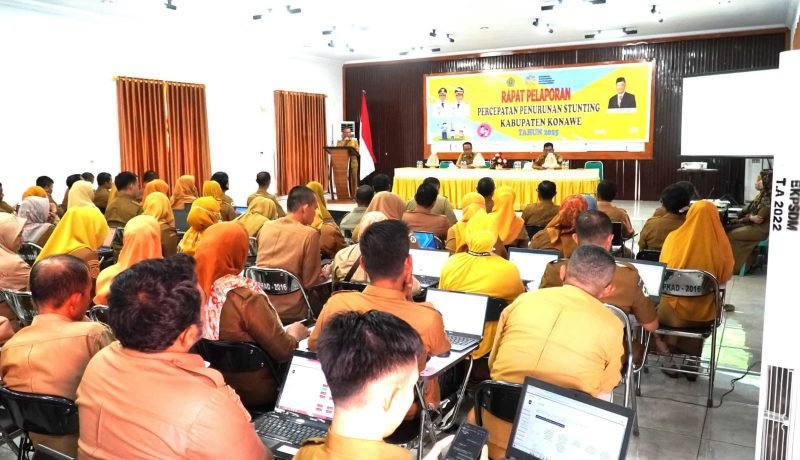 Hadir dalam rapat para camat, kepala puskesmas, OPD terkait, dan tim percepatan penurunan stunting di Aula BKPSDM Konawe, Senin, 21 Juli 2025.