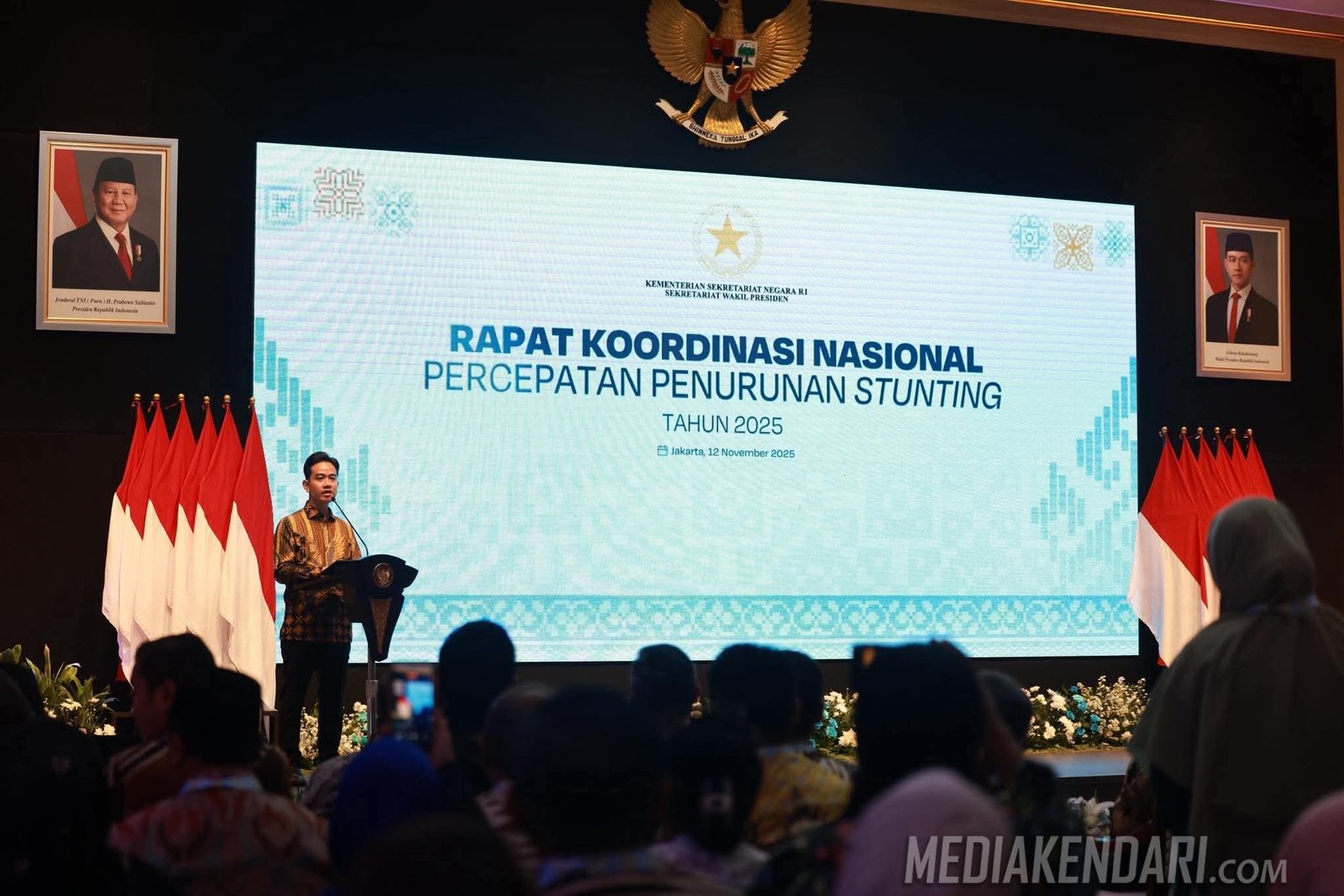 Rakornas yang dipimpin langsung oleh Wapres Gibran tersebut dihadiri oleh Menteri Pendudukan dan BKKBN, Menko PMK, Menteri Kesehatan, Wakil Menteri Desa, Wakil Menteri Dalam Negeri, serta para gubernur, bupati/wali kota, perwakilan kementerian/lembaga, dan mitra pembangunan dari seluruh Indonesia. Kegiatan ini menjadi forum penting untuk menyamakan langkah penanganan stunting secara nasional.